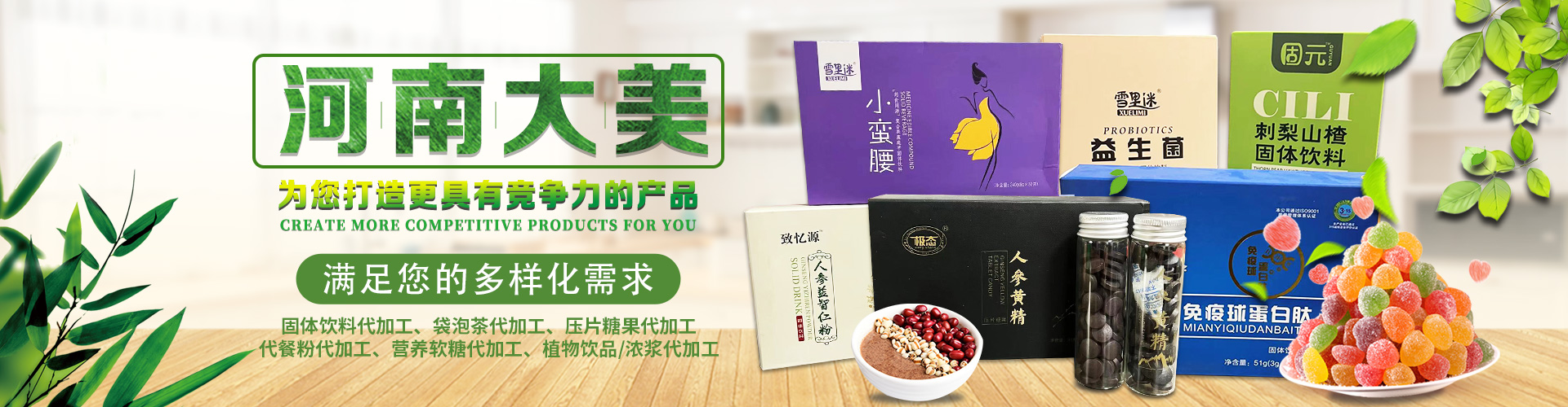 河南大美生物科技股份有限公司是從事顆粒劑、(固體飲料類),壓片糖果代加工等研發(fā)和銷售為一體的生產(chǎn)企業(yè)。公司依托自身的高科技研發(fā)隊伍和營銷團隊,為國內(nèi)外客戶提供營養(yǎng)食品各劑型和規(guī)格的研制、生產(chǎn)、配方設(shè)計、批文申報等服務(wù),并為客戶提供多種形式的流通渠道及產(chǎn)品銷售服務(wù)工作。 您的要求就是我們的使命!我們的宗旨是與客戶“合作共贏,攜手向前”,共同創(chuàng)造事業(yè)新的輝煌!
